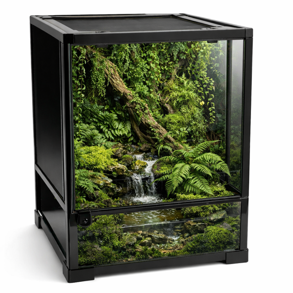 Ideal for large semi-aquatic reptiles or amphibians that require ample space to swim, climb, and explore in multi-zone environments.